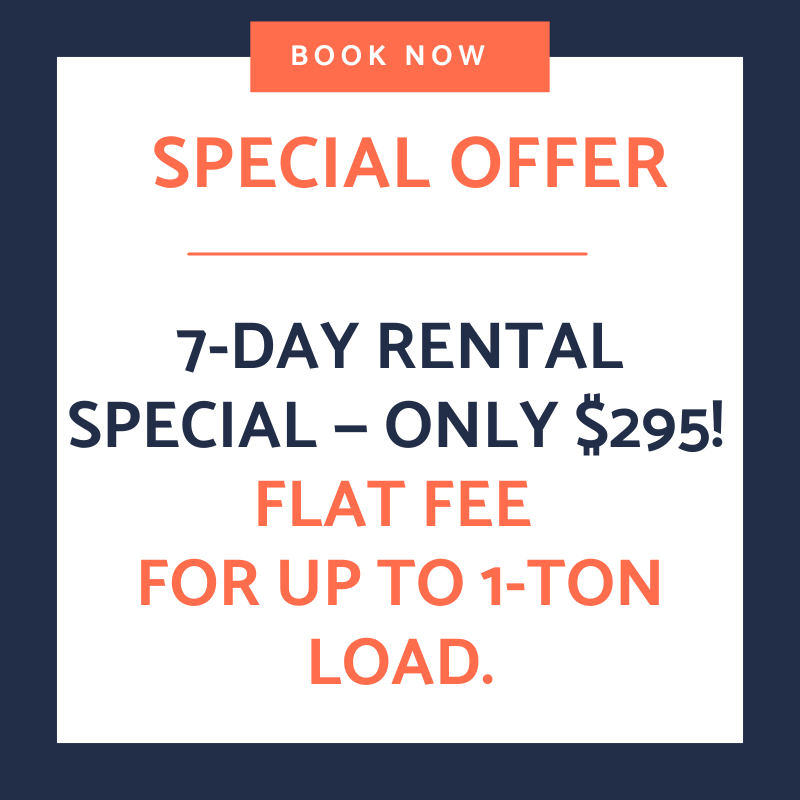 Disclaimer: All pricing is subject to change without prior notice. Rental rates, fees for additional days, overweight charges, dump fees, and other service-related costs may vary based on disposal facility rates, fuel costs, local regulations, or other operational factors. While we make every effort to keep our pricing accurate and up to date, final charges will be confirmed at the time of booking.